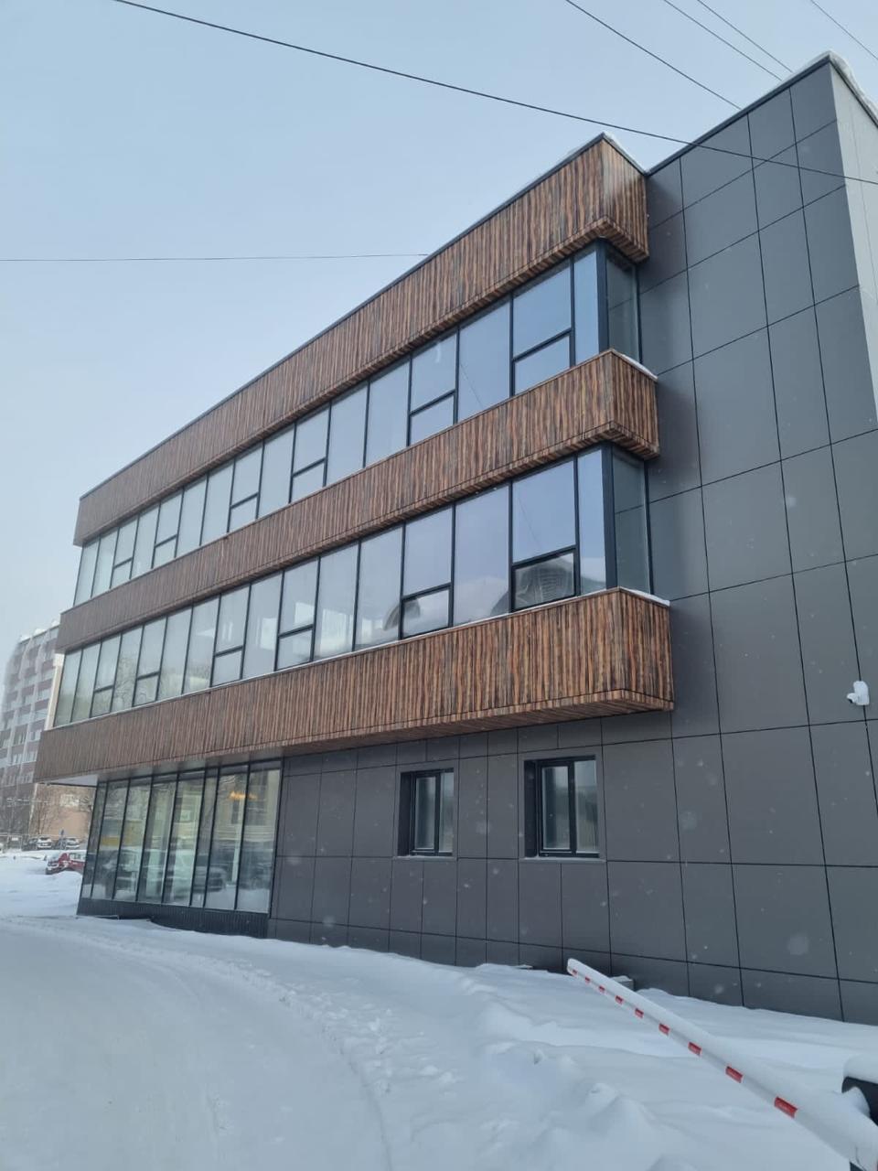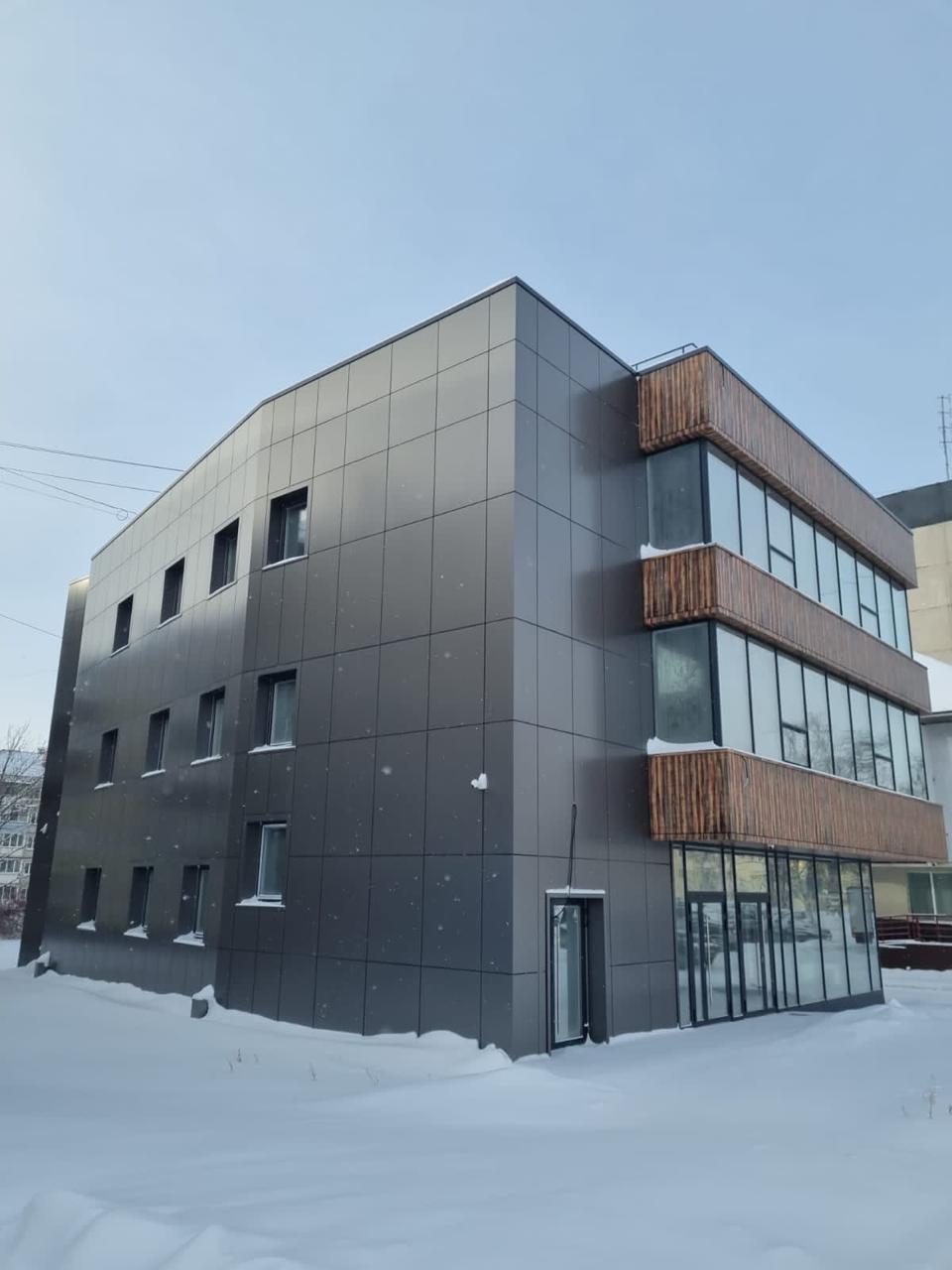 Монтаж навесного фасада выполнен на основе разработанной командой документации, с учётом климатических, ветровых и сейсмических условий г. Южно-Сахалинска. В качестве облицовки применены алюминиевые композитные панели, установленные на фасадную систему Альт-Фасад-06 с обязательным воздушным зазором.